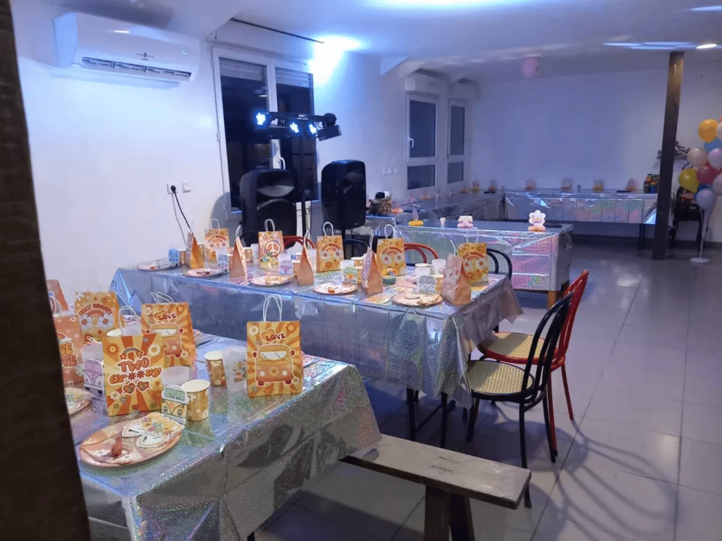 Notre salle de réception de 80 m² en pierres apparentes s’ouvre sur un espace dansant de 50 m² pouvant accueillir jusqu’à 130 personnes assises. Elle combine charme rustique et convivialité pour vos repas de fête, soirées ou événements professionnels.